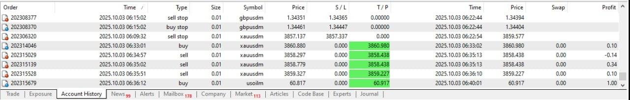 👉 The EA closes trades after small but frequent profits, reflecting a scalping and high-frequency approach.